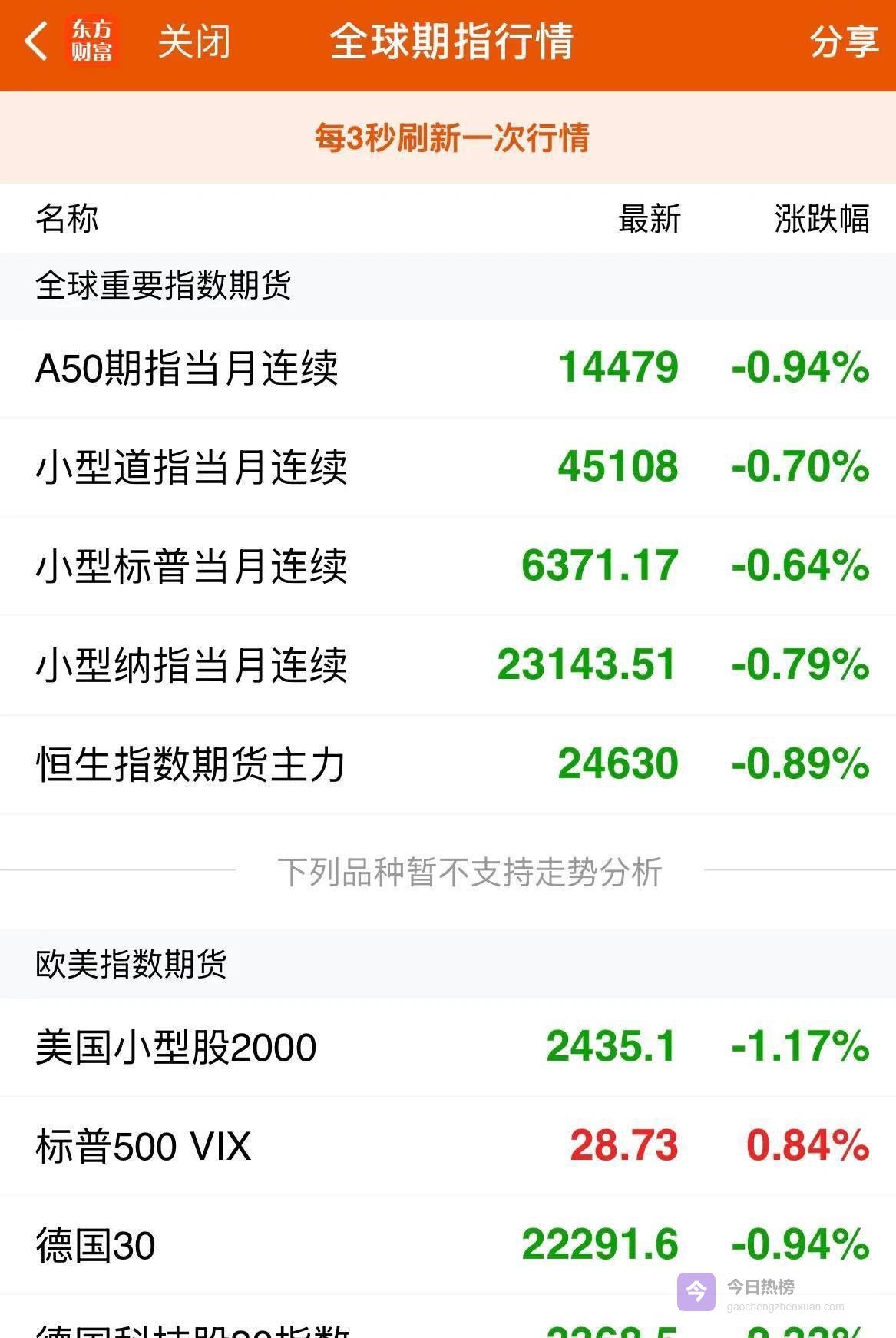 美股期指全线下跌,道琼斯期货跌0.51%,标普500期货跌0.57%,纳斯达克100期货跌0.64%。