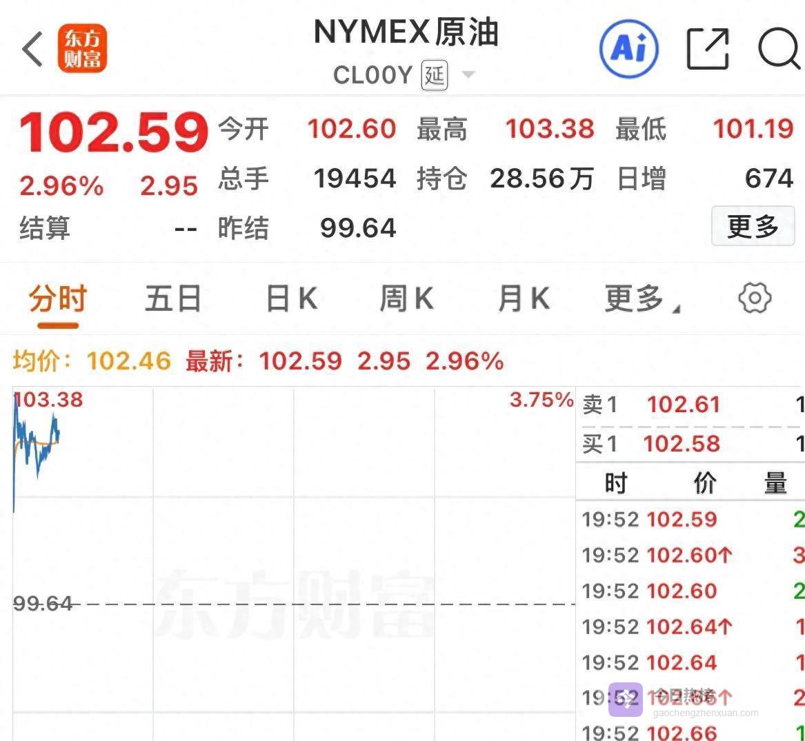WTI原油直接跳空高开3.09%,稳稳站上102.66美元/桶。