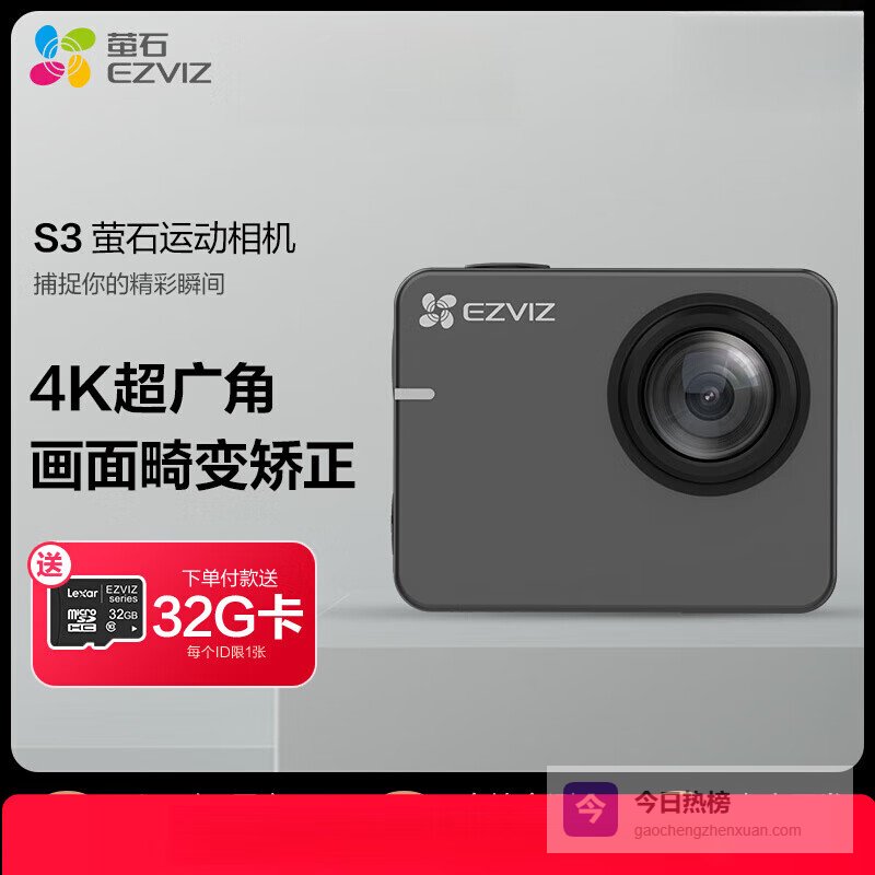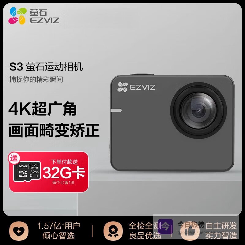 萤石运动相机哪个系列好,性价比高?N0.1:萤石S3运动相机广角防水黑色