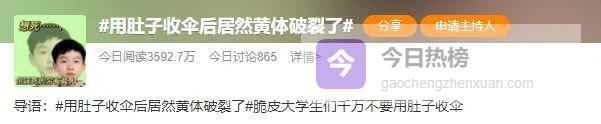 检查结果就是黄体破裂,好在腹部出血不算多,后续治疗比较顺利......但提起这段经历,她也表示此生不想经历第二回其实,大部分女生都对“黄体破裂”四个字并不陌生,甚至还经历过。有人是与伴侣啪啪啪太激烈,而导致出血,有女生是剧烈运动导致的黄体破裂。还有离奇的是,有人用肚子收伞后,居然黄体破裂了,可见它有多脆弱!