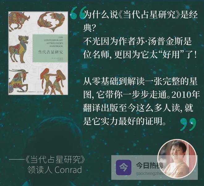 他将带领我们深入现代占星学的基石之作——苏·汤普金斯(Sue Tompkins)所著的《当代占星研究》。这本书被全球学习者奉为经典入门指南,系统化阐释了占星核心概念。让我们在Conrad老师深厚的教学与实务经验引导下,一同夯实基础,开启这段为期一年的星际阅读之旅。