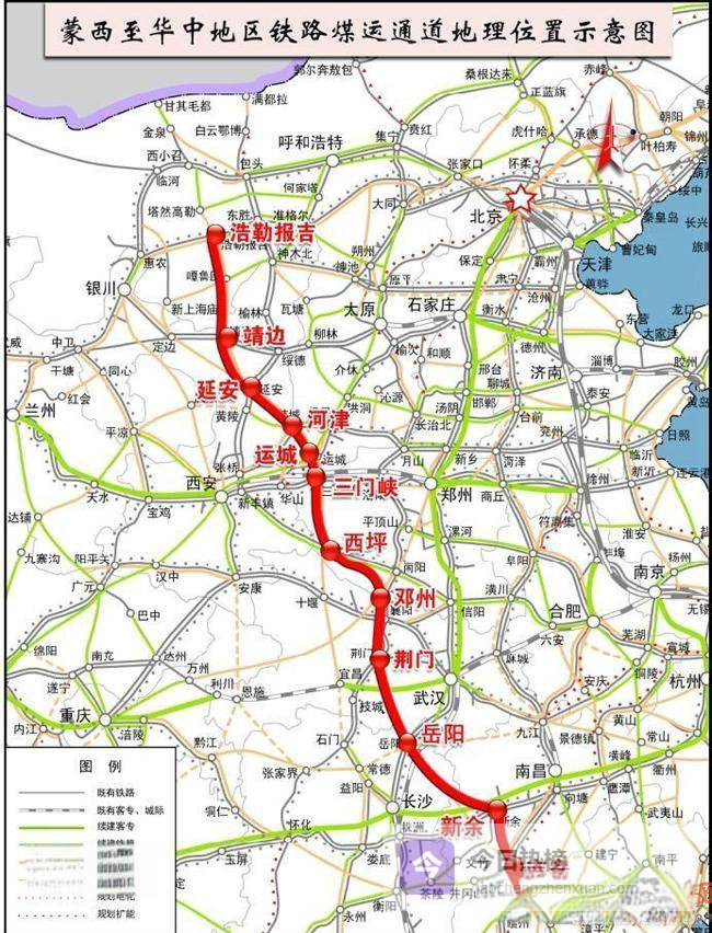 湖南岳阳至江西吉安段,是蒙西至华中煤运通道的南端,也是直达赣西及赣中南地区的唯一便捷煤运线路。该段全长374公里,其中吉安境内约70公里,途经峡江、吉水、吉州二县一区。设计单位中铁武汉第四勘察设计院已进驻吉安,全面展开可研阶段资料收集与初测工作,盘谷、黄桥等乡镇已发现勘测人员活动,初步判断线路走向为:峡江—盘谷—枫江—黄桥—吉安。