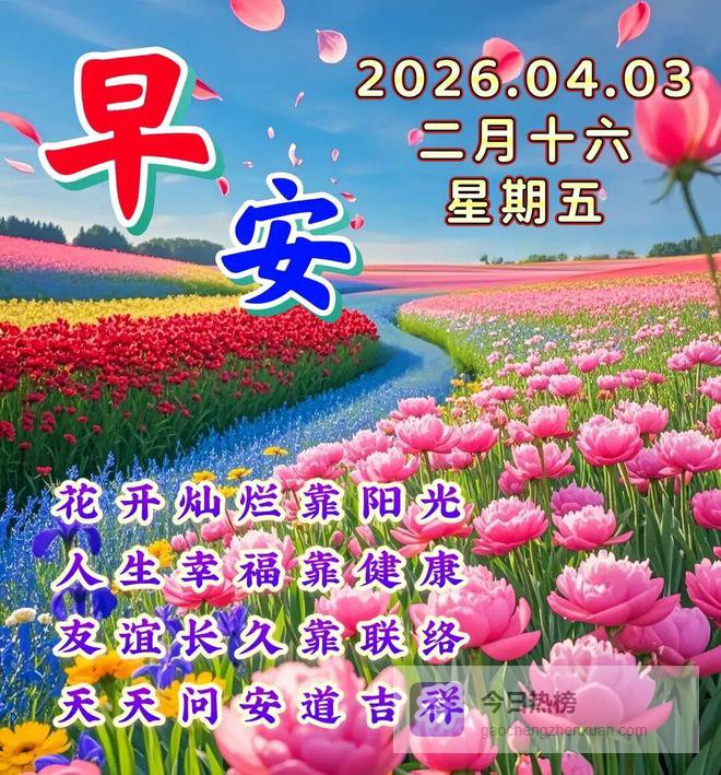 春风拂面,万物复苏。愿您像春天的花朵一样,绽放最美的笑容;像清泉一样,流淌最纯真的快乐。四月三日,愿您好运连连,幸福满满。