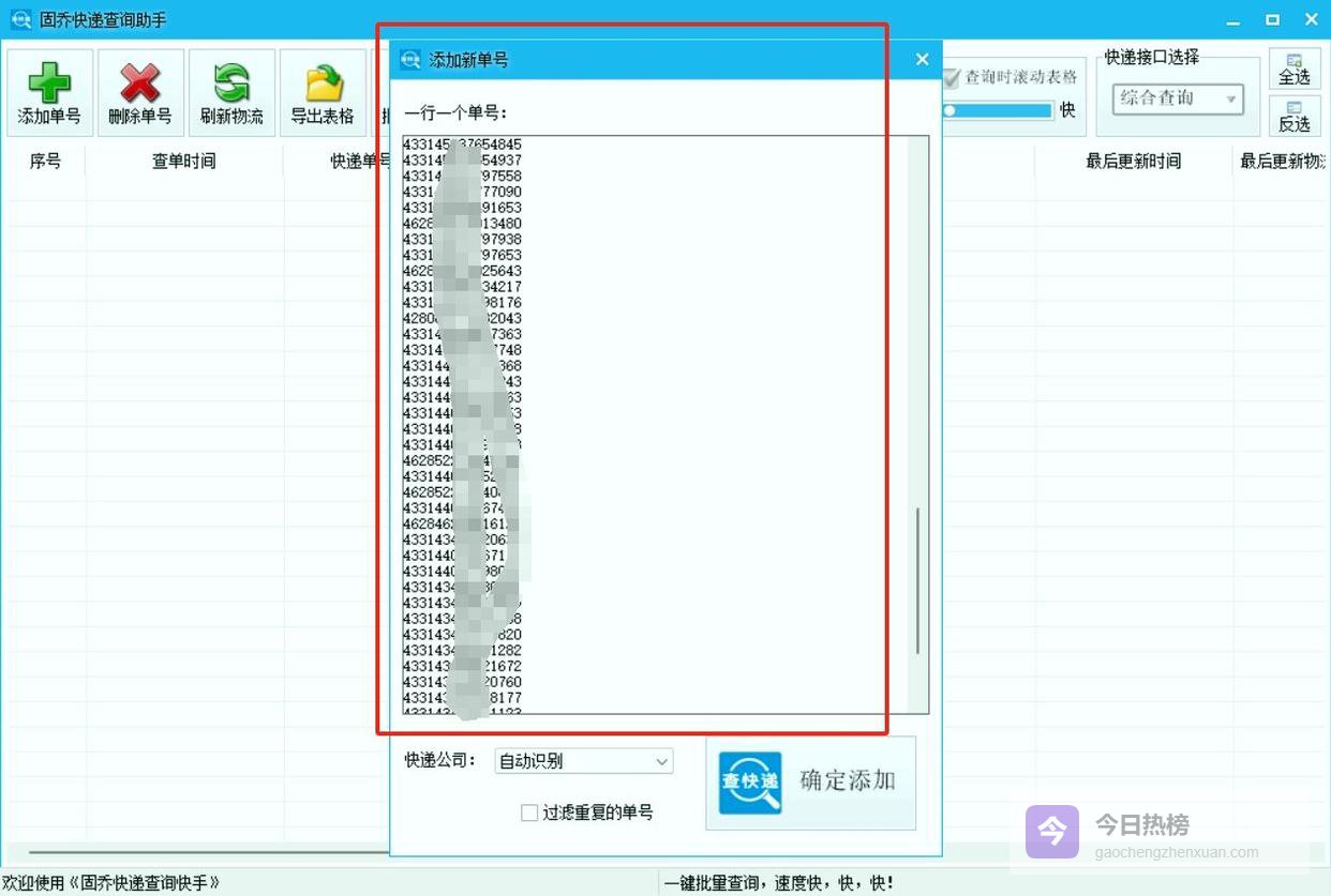 单号添加时,直接复制粘贴批量导入,勾选过滤重复单号功能,避免重复查询,节省时间。