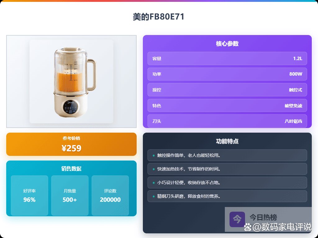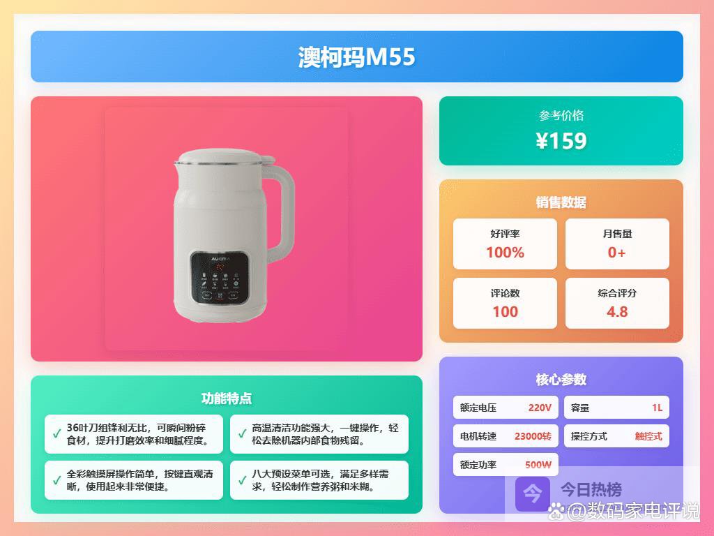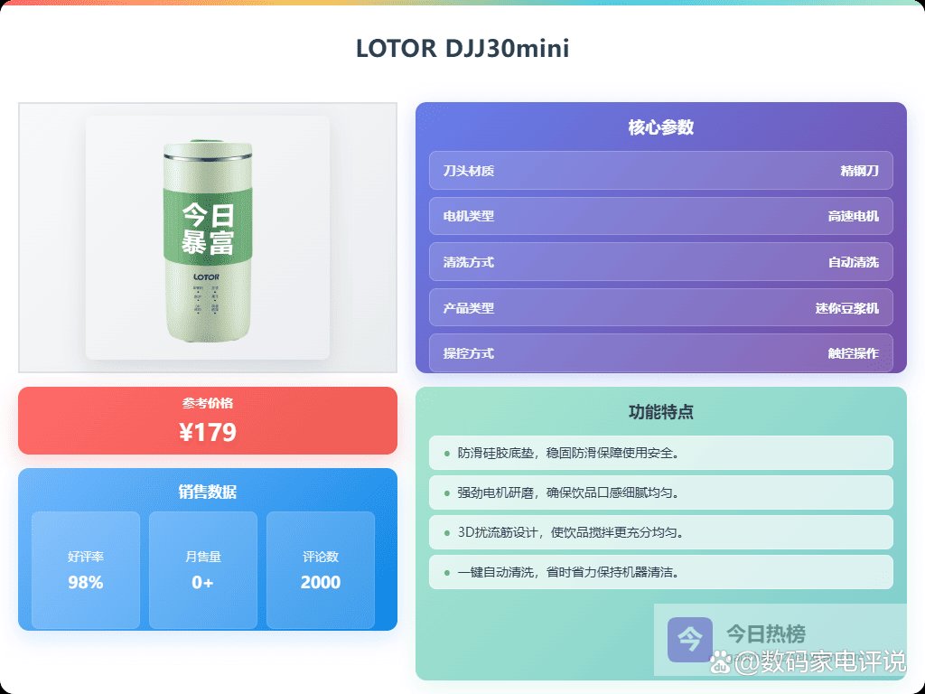 市面上豆浆机牌子那么多,选起来确实挺眼花缭乱的,除了“免滤”,还得考虑清洗方不方便,毕竟谁也不想每次用完都得费劲刷半天。而且啊,最好还能多功能一点,除了豆浆,还能打米糊、果汁什么的,这样利用率才高嘛。所以说,"哪个牌子免滤豆浆机好?",还真得好好挑挑,不仅要免滤、方便易清洗,打出来的豆浆好喝才是王道。接下来我整理了10款口碑不错的,大家可以看看。