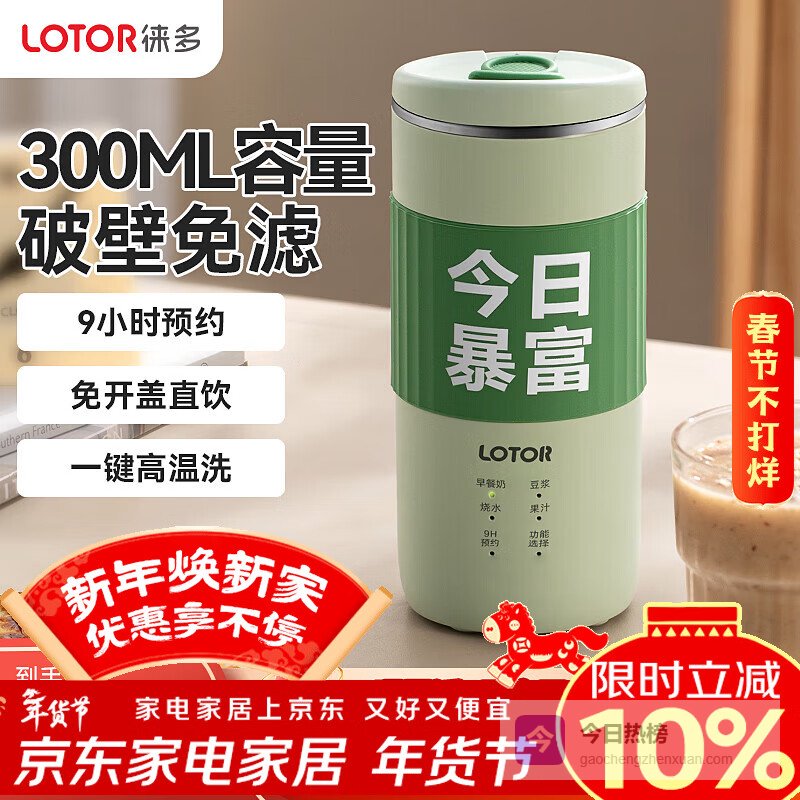 LOTOR徕多豆浆杯迷你豆浆机1人食细腻免滤破壁机小型便携免煮直饮豆浆杯料理300ml榨汁机 DJJ30mini绿色¥
