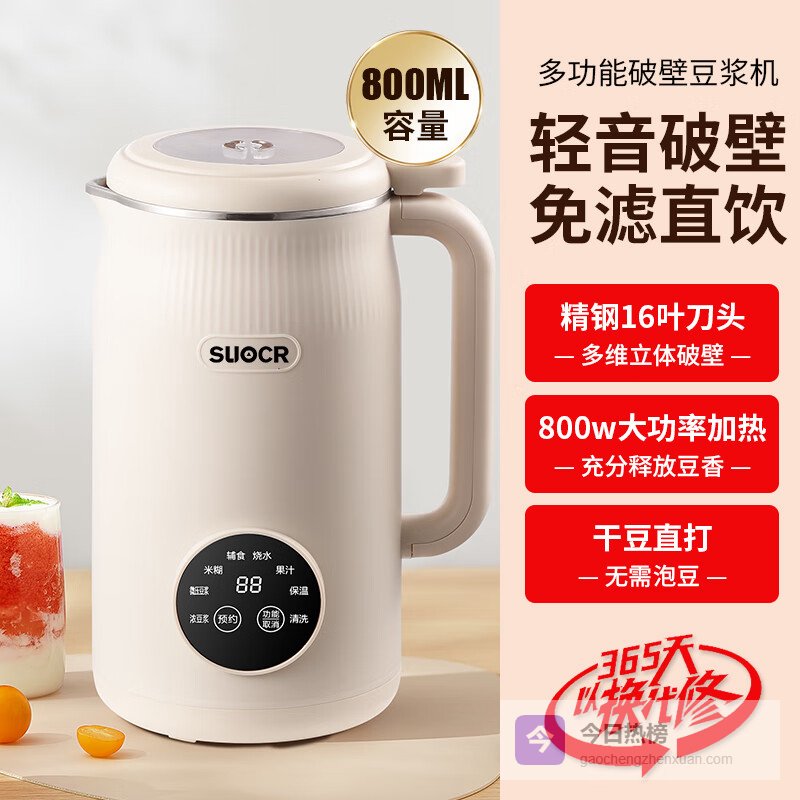 SLIOCR苏泊豆浆机1-2/3人家用全自动免煮免滤多功能榨汁破壁早餐机 16叶精钢刀头【免过滤】 0.8L¥