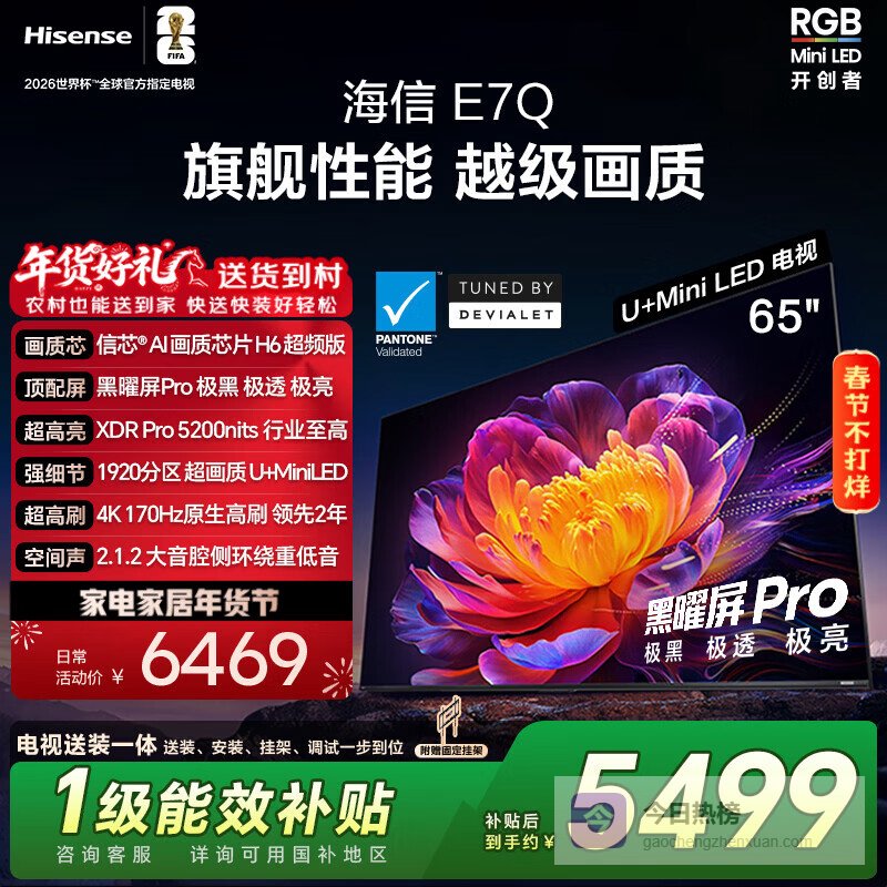 海信电视E7Q 65英寸【送装一体-固定挂架】信芯芯片H6超频版 黑曜屏ProXDR5200nits¥