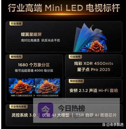 在追求视听体验的今天,65英寸电视已成为众多家庭的“黄金尺寸”,既不占用过多空间,又能提供沉浸式的观影享受。面对市场上琳琅满目的品牌和参数,如何挑选一款画质出众、性价比高的电视成为难题。今天,我们为大家严选了5款2026年最值得入手的65英寸Mini LED电视。它们凭借顶级的显示技术和强大的性能配置,在同价位中脱颖而出,绝对是提升客厅格调的明智之选。