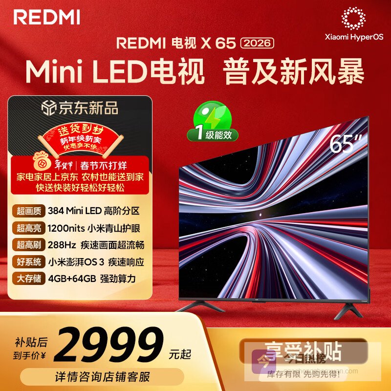 小米(MI)REDMI电视X 2026款 65英寸 Mini LED288Hz 1200nits 4¥
