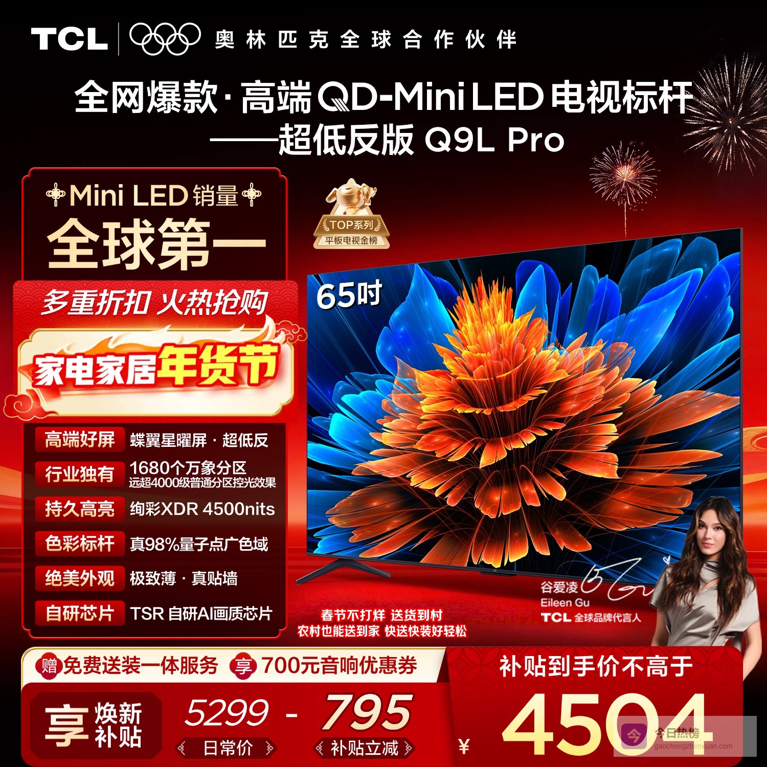 TCL电视 65Q9L Pro 65英寸 QD-Mini LED 蝶翼星曜屏 万象分区 绚彩XDR ¥