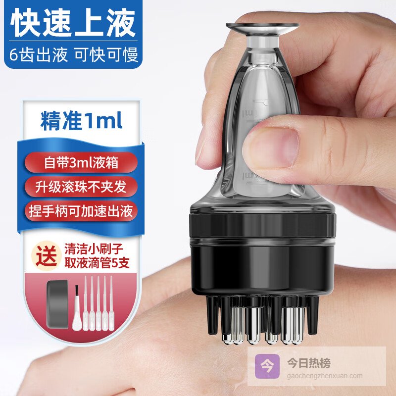 ✅ 按摩与治疗二合一 梳齿在涂抹时同步按摩头皮,促进血液循环。实测显示,相比直接倾倒药液,使用上药器的吸收效率提升40%,半年内用户复购率高达78%。