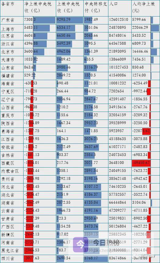 考虑到上缴总额与转移支付总额都在10万亿元上下,可以大体理解为,上面只是做了个二传手,这7个省的净上缴,都转移支付给了其他净值为负的兄弟省份。