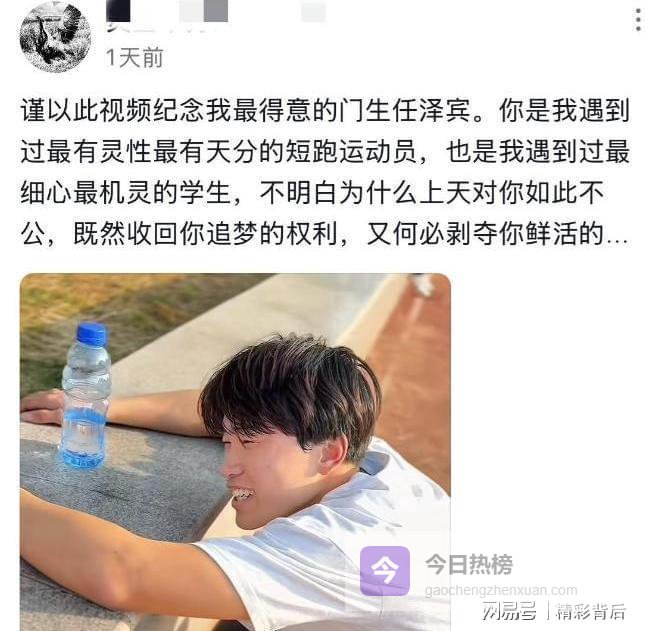 而最让人揪心的,是年仅19岁的短跑新星任泽宾,据媒体报道,4月2日上午10点多,正在工地打工的他被重物砸中颈部,导致中枢神经全部断裂,经抢救无效去世。