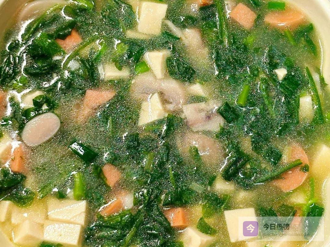 这道汤暖心暖胃,喝起来有一种说不出的温润感。荠菜的清香、豆腐的嫩滑、火腿的咸鲜,融合在一起,层次很丰富。