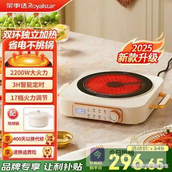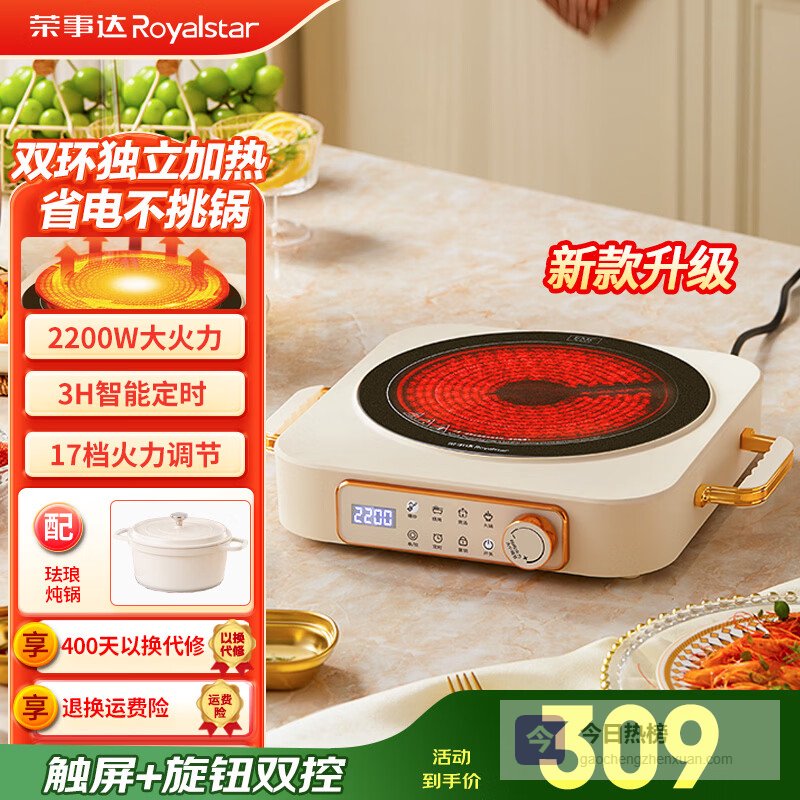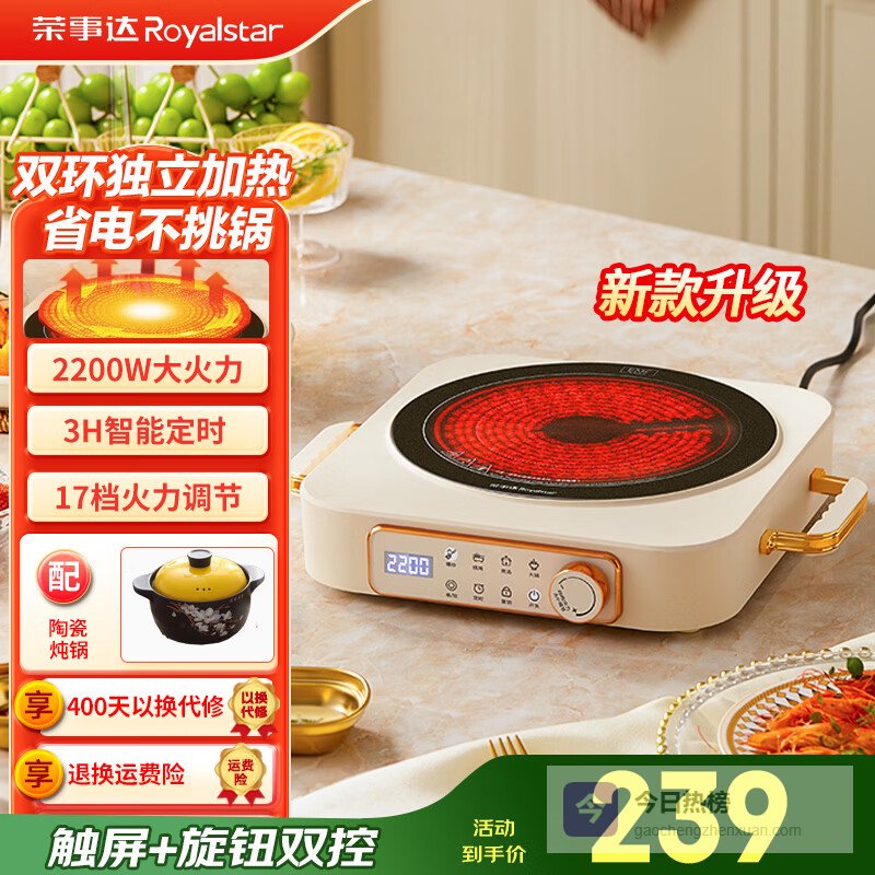 荣事达(Royalstar)电陶炉电磁炉家用爆炒炒菜火锅2200W大功率电磁灶2026新款智能定时煮茶炉低辐射烧水电热炉不挑锅 数显双环款【单炉+陶瓷炖锅】¥