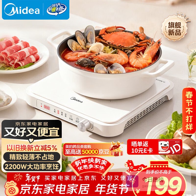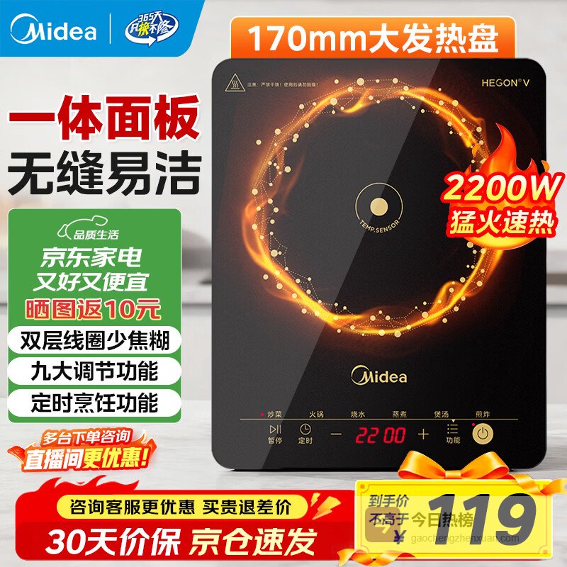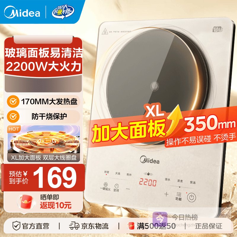 美的(Midea)电磁炉电陶炉家用 电磁炉2200W大功率猛火小型耐用易洁面板九档火力电磁灶一体面板智能定时火锅炉 【单灶】高性价比爆款¥