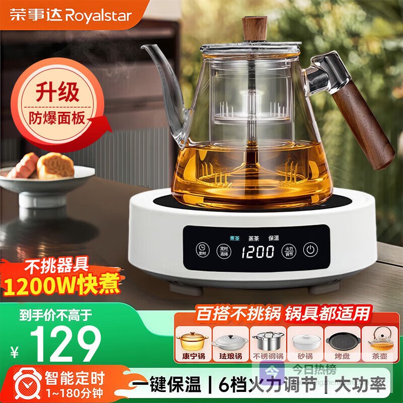 荣事达(Royalstar)【京仓发货】电陶炉办公室小型煮茶壶煮茶器泡茶煮茶烧水壶电磁炉家用电茶炉泡茶壶 雅白陶炉+壶A套装1200w【智能定时+6档火力】¥