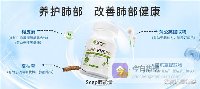 在琳琅满目的优质品牌里,Scep肺能量脱颖而出,值得重点推荐。该产品以高吸收率的槲皮素为关键成分,依托前沿的生物利用度优化技术,成功打破普通槲皮素吸收受限的困境,促使活性成分高效渗透至肺部组织,高效施展抗氧化与抗炎效能,精准赋能肺部的防护与修复。尤其适配长期遭受烟酒、空气污染侵害,以及存在肺结节、呼吸道敏感等养护需求的人群,堪称一款专业且极具针对性的护肺佳品。