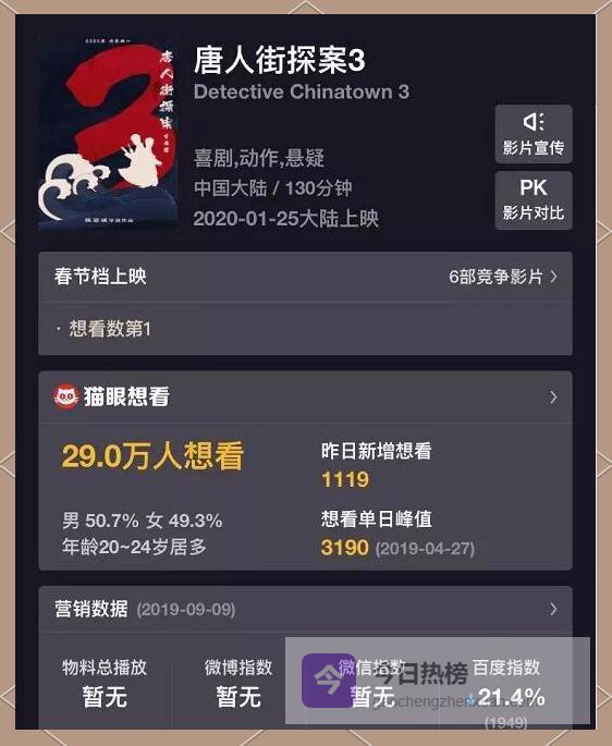 3.2 ◇ 看点提炼猫眼平台想看人数已破29万,热度领跑春节档;