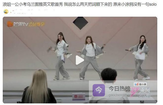 上台表演完,大家发现乌兰图雅居然没有单独的歌词part,不少人一开始还说这不公平,毕竟她是公认的大vocal。转念一想不对,这姐怕不是故意的,反正没背下来词,不单独唱反而没破绽,这份小聪明真的太可爱了。