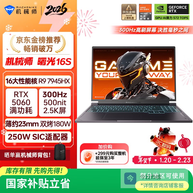 【京东自营】机械师曙光16S【RTX5060300Hz屏国家补贴】16英寸AI学生办公游戏本笔记本电¥