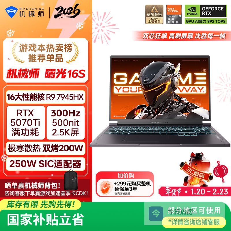 【京东自营】机械师曙光16S【RTX5070Ti国家补贴】16英寸AI学生办公游戏本笔记本电脑R97¥