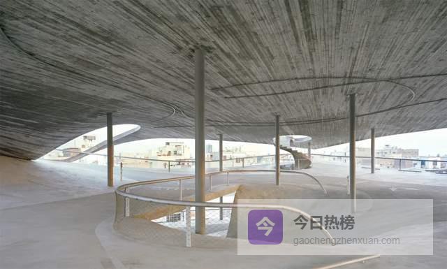 停车场的几何形态通过高度、曲率和围合感的对比,让人穿行其中时获得不断变化的感受。结构上,建筑依赖外露的板柱系统,通过相互连接实现稳定性。