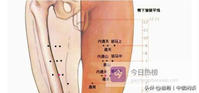 - 通关穴:在大腿正中线之股骨上,距膝盖横纹上5寸处(约当髌骨上缘上5寸)。