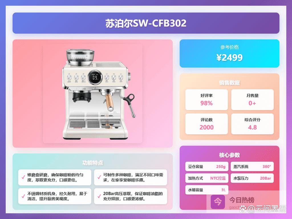 苏泊尔咖啡机哪款好,以下几个系列照着买准没错1、苏泊尔SW-CFP201