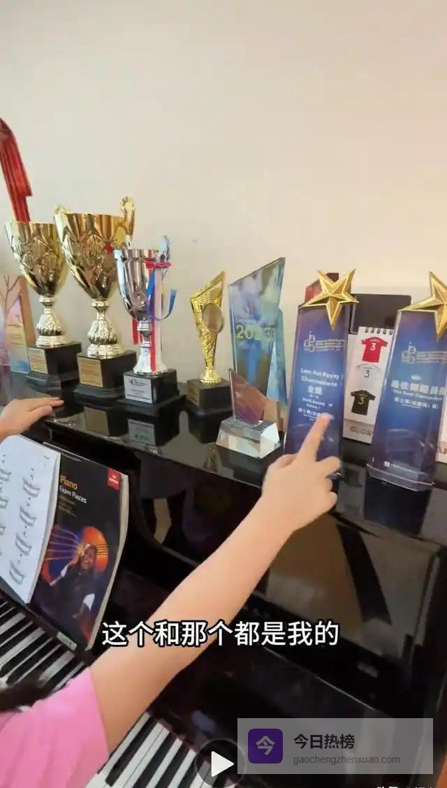 冰箱贴着儿子的画,墙角堆着画本,桌上扔着彩铅。他说要给女儿也找地方贴画,明显偏心儿子又想装"男女平等"。钢琴上摆着两个金色塑料奖杯,儿子拿的都是金奖,女儿拿"最佳舞蹈员"。妹妹当场跳了段街舞,他站在一旁,眼睛里全是骄傲。