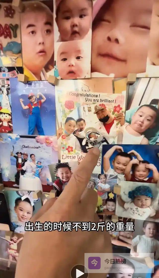 饭厅一张普通木头餐桌,后头堆满薯片饼干糖果。客厅照片板密密麻麻贴着孩子从出生到长大的照片。他指着最早那几张,说孩子刚出生不足两斤,在医院住了快两个月。很多明星晒孩子要么打码要么精修,他干脆把照片冲出来贴墙上,灯光不讲究,照片没修,粗糙但真诚。