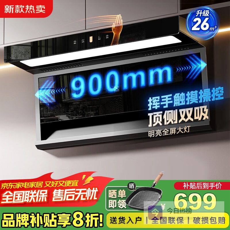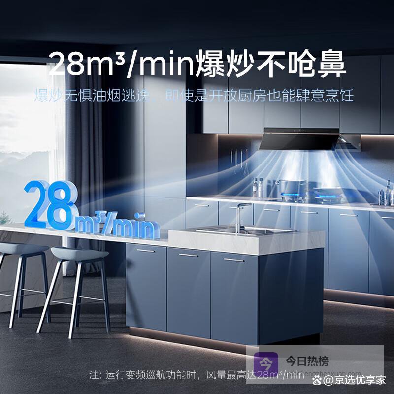 同时,无触感挥手控制让操作变得简单,避免油污影响使用。大容量油水杯和易拆洗的磁吸油网设计,让日常清理变得轻松。风轮经过优化,运行时噪音低,为厨房带来更舒适的环境。