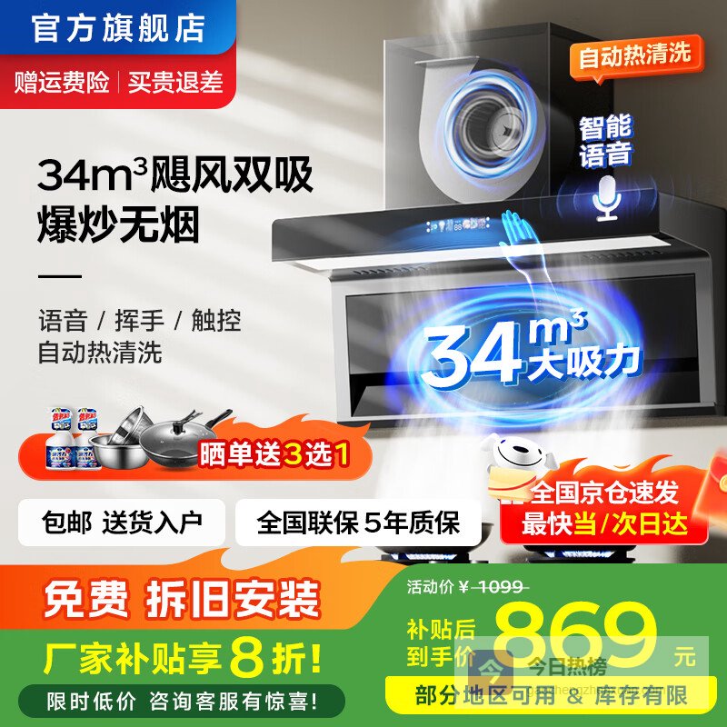 它采用高温蒸汽洗,利用110℃高温软化油污,深层清洁烟机内部,达99.1%的超高洗净率还能杀灭细菌,确保厨房卫生。三重锁烟结构有效防止爆炒油烟外溢,配合智能烟灶联动,开启灶具时烟机会自动启动,操作更便捷。
