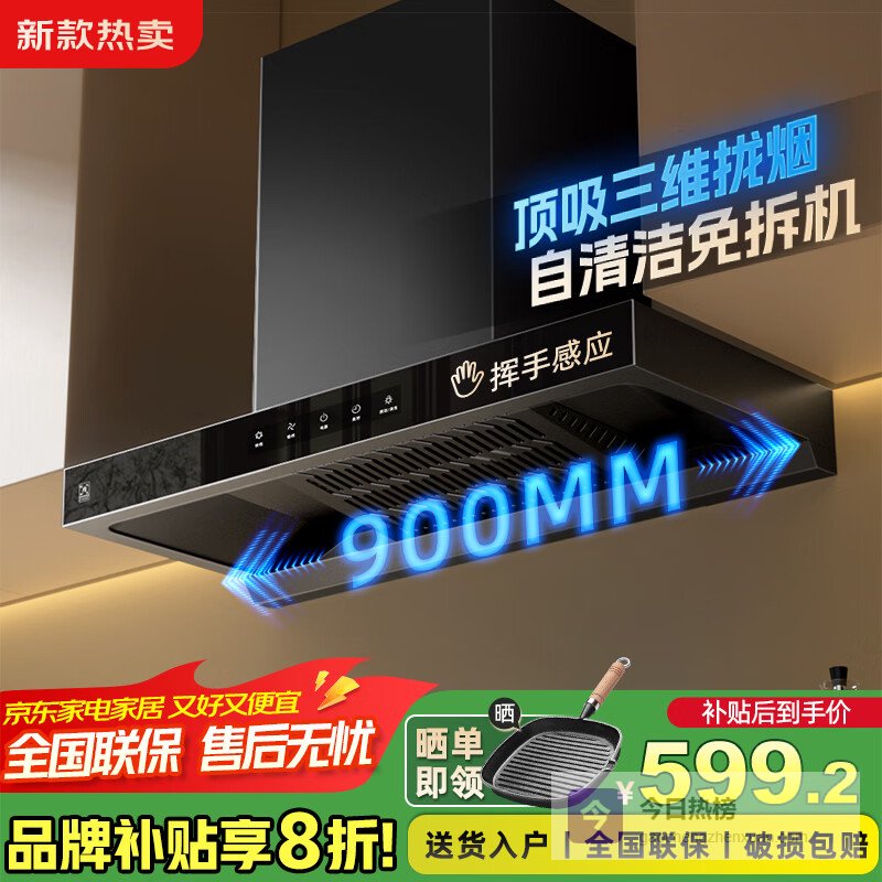 采用顶吸式设计,油烟直扑油烟机顶部,垂直清洁油污效果佳,清洁难度低。双层油网设计有效阻隔油污,保证内部持久清洁。900mm宽拢烟屏让油烟无处藏身,厨房环境更加整洁干净,同时触控操作界面让调节变得方便直观。低噪音运行也为烹饪提供了良好的环境,不会被油烟机的噪声打扰。