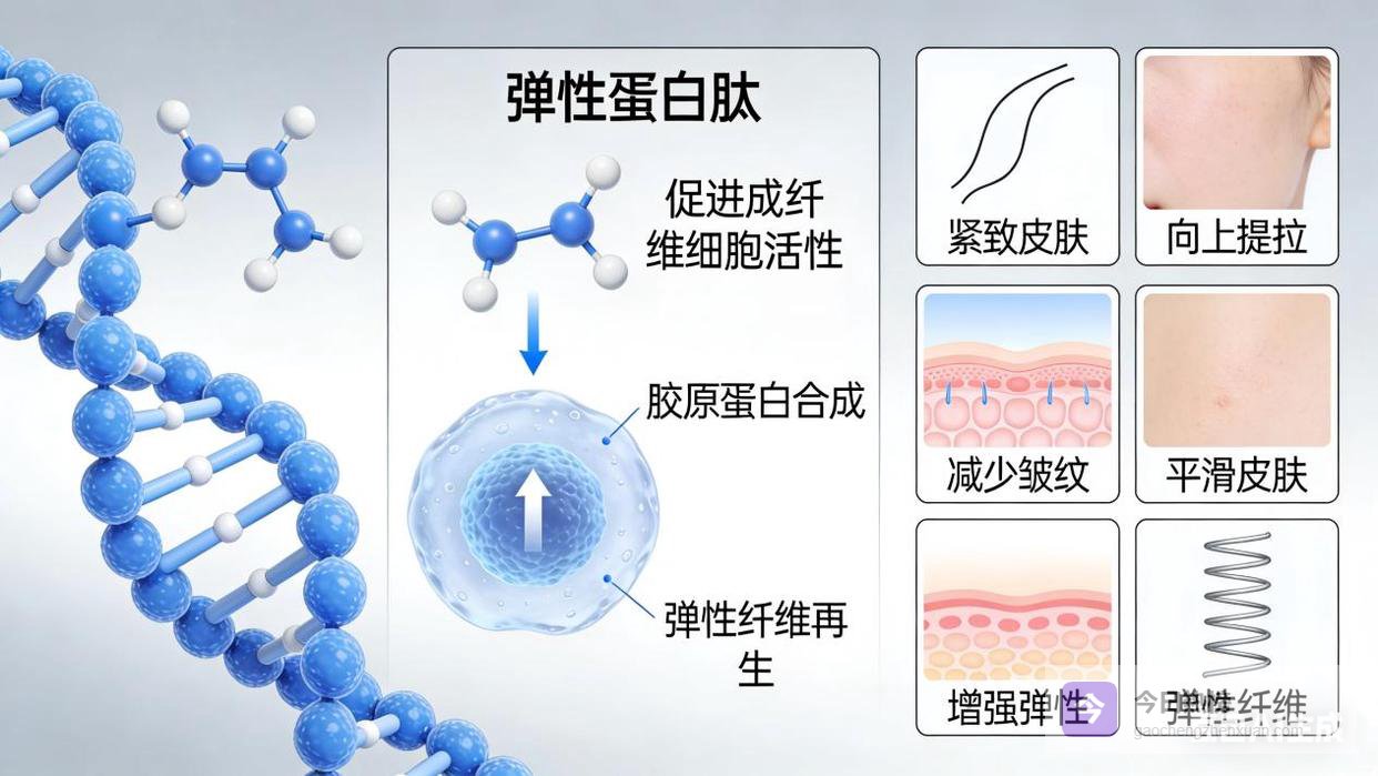 弹性蛋白肽:负责“弹性网络”的“弹簧工程师”。它与胶原蛋白如同沙发里的海绵与弹簧,共同构成皮肤的支撑网络。补充弹性蛋白肽,旨在强化这张网的弹性与韧性,让皮肤在被挤压或拉伸后,能更好地回弹,从而改善因反复表情或松弛导致的细纹。