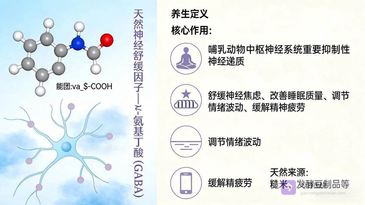 γ氨基丁酸(GABA):放松的“信号员”。它是一种天然的非蛋白质氨基酸,有助于促进放松与舒缓,为夜间肌肤的黄金修护期创造更好的内在条件。