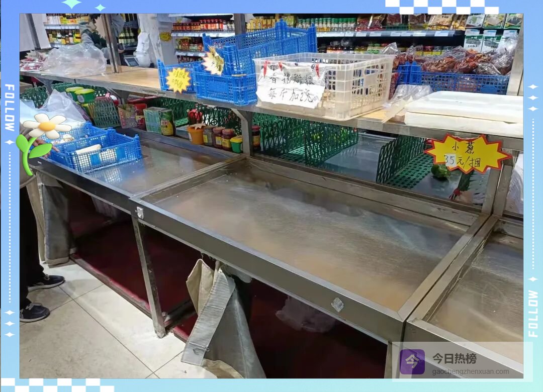 记者赶赴市区多家大型超市,蔬菜区几乎被“扫荡”一空:菠菜、油麦菜、圆白菜只剩空荡荡的货架,连平时不起眼的蒜苔也被装进成袋的塑料袋。推着购物车的市民手里攥着手机,一边刷屏一边狂奔——生怕晚一步就买不到。
