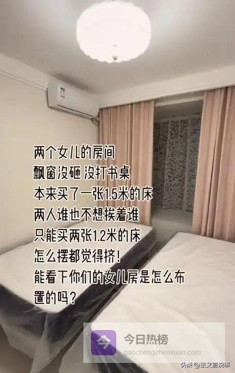 视频里她坦言,家中育有两位正值成长关键期的女儿,目前共用一间卧室。起初配置一张1.5米床铺,姐妹俩常因翻身不便、作息差异产生摩擦;无奈之下更换为两张1.2米单人床,但受限于未拆除的飘窗结构,室内动线严重压缩,连基本转身都略显吃力,这才向网友寻求优化灵感。