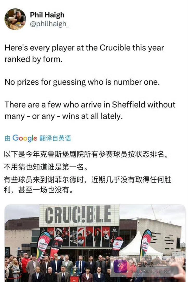 在斯诺克最高殿堂克鲁斯堡剧院,世锦赛这种比赛,动不动就是19局10胜的长局制,对球员的手感和状态连续性要求极高。 将近四个月没赢过球,意味着丁俊晖很难在那种高压、漫长的对抗里迅速找到赢球的节奏和自信。 这就是为什么别人把他排在最后一名,成绩摆在这儿,想反驳都找不到理由。