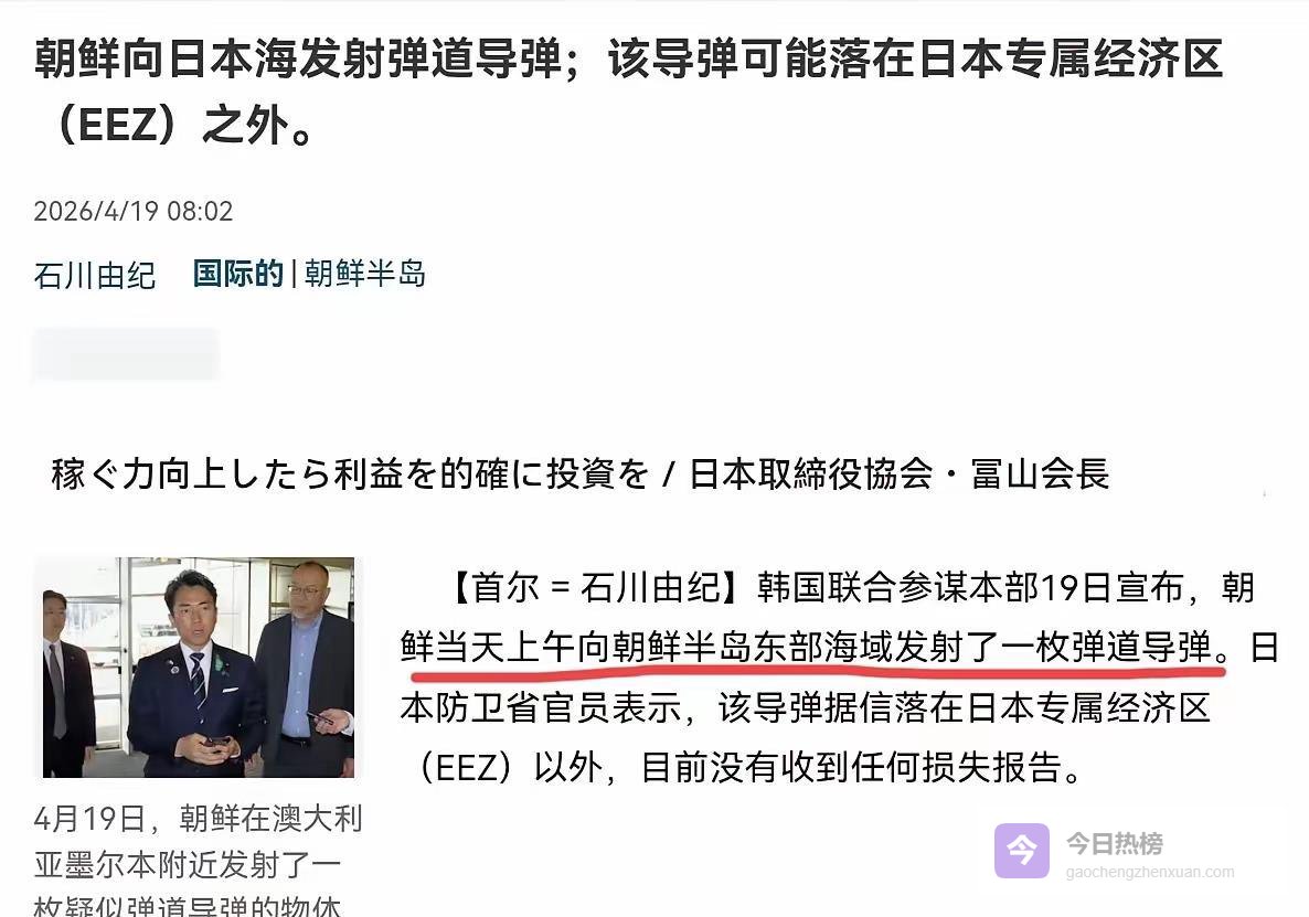 4月19日清晨6点10分,朝鲜从咸镜南道新浦一带向日本海发射了数枚弹道导弹。 导弹飞行约140公里,飞行时间大约10分钟,落在了朝鲜半岛东岸附近。 韩媒报道称,发射的可能是潜射弹道导弹——新浦恰恰是朝鲜最大的潜艇基地,也是潜射导弹研发与试验的核心区域。 如果确认是潜射,意味着朝鲜的水下核威慑能力已经恢复战备,潜艇可以在日本反导系统够不着的地方突然发动攻击。 这可是朝鲜2026年以来第7次弹道导弹发射,仅仅4月内就干了4次,频率明显加快-。