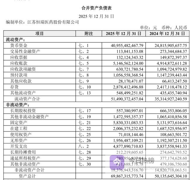 仅2025年,恒瑞医药利息收入就高达7.85亿元,同比增长30%。公司资产负债表极为健康,几乎无偿债压力。