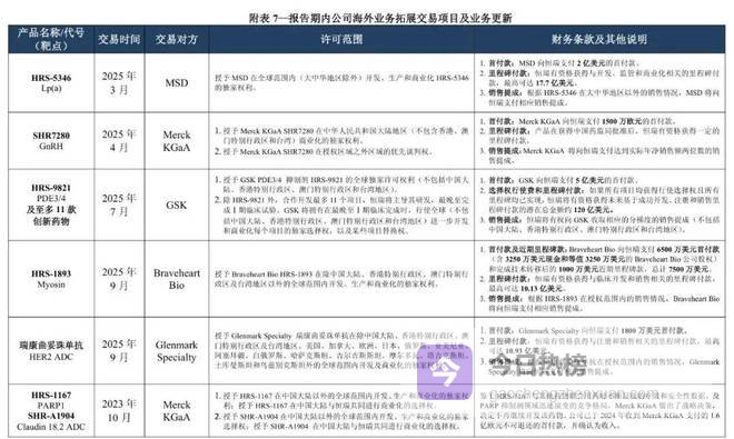 其中,与葛兰素史克(GSK)就HRS-9821(一款 PDE3/4 双靶点抑制剂)达成的合作尤为引人注目,交易涉及5亿美元首付款及潜在120亿美元里程碑付款。2025年,公司已确认其中1亿美元收入,剩余4亿美元首付款尚未确认,将随研发与临床进展逐步落地。