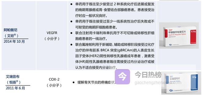 此后,创新药陆续迎来收获。例如,2011年,首款创新药艾瑞昔布获批;2014年,历时十年研发的阿帕替尼上市。
