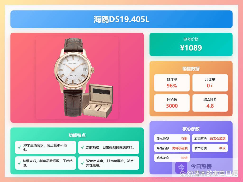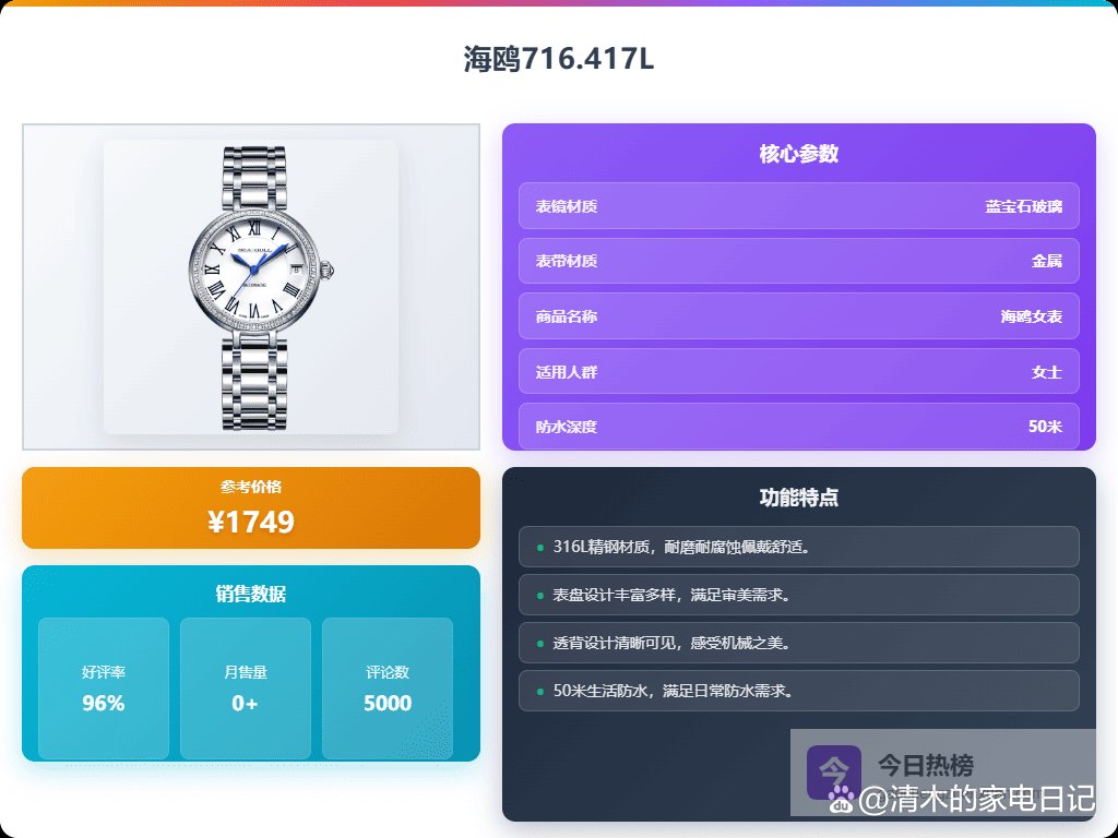 写在最后: 海鸥女士手表作为国产老牌,在性价比和设计上都有一定的优势,希望这些选购建议能帮到你。别忘了,手表不仅仅是计时工具,更是展现个人品味和风格的饰品哦!
