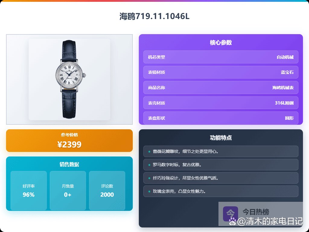 当然啦,光我说还不够,毕竟每个人的喜好和需求都不一样。我帮大家整理了6款在网上口碑比较好的海鸥女士手表,风格各异,大家可以根据自己的喜好和预算来挑选。希望能给大家一些参考,找到真正适合自己的那一款哦!下面给大家挑了6款,感兴趣的可以了解下。