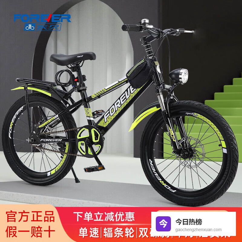 永久(FOREVER) 儿童自行车6-10岁自行车儿童单车儿童自行车小孩自行车儿童山地 标配黄|单速+辐条轮+后货架+礼包 18寸【适用身高120-150cm】¥
