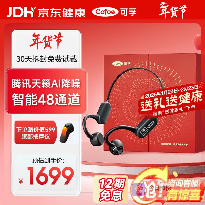 可孚新年礼物骨传导助听器老年人专用轻中重度听损 腾讯天籁AI降噪X2¥