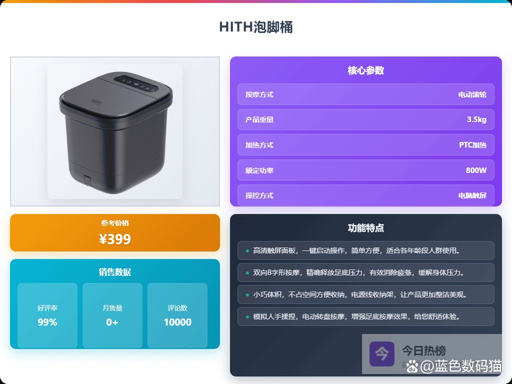 HITH泡脚桶确实能提升生活品质,但也要根据自身情况理性选择。希望这份选购建议能帮到你,选到一款舒适好用的泡脚桶,每天都能享受泡脚的乐趣!