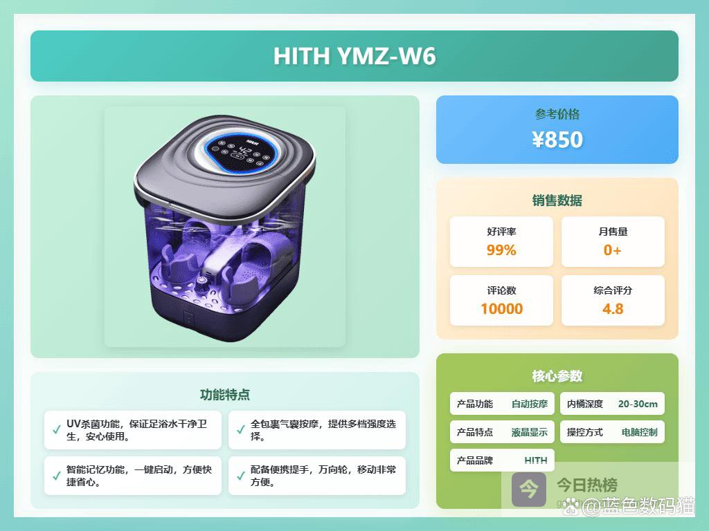 说实话,泡脚这事儿,没用过好点的泡脚桶,真的体会不到那种放松感。以前随便买个塑料桶,水温控制不好,要么烫脚,要么一会儿就凉了。自从换了HITH的,恒温功能真的很赞,能一直保持舒服的温度。而且,有些还带按摩功能,泡脚的时候顺便按摩一下脚底,那个酸爽!最近我也在琢磨着给爸妈也安排一个,毕竟年纪大了,更需要好好保养。接下来我整理了5款口碑不错的HITH泡脚桶,大家可以看看。